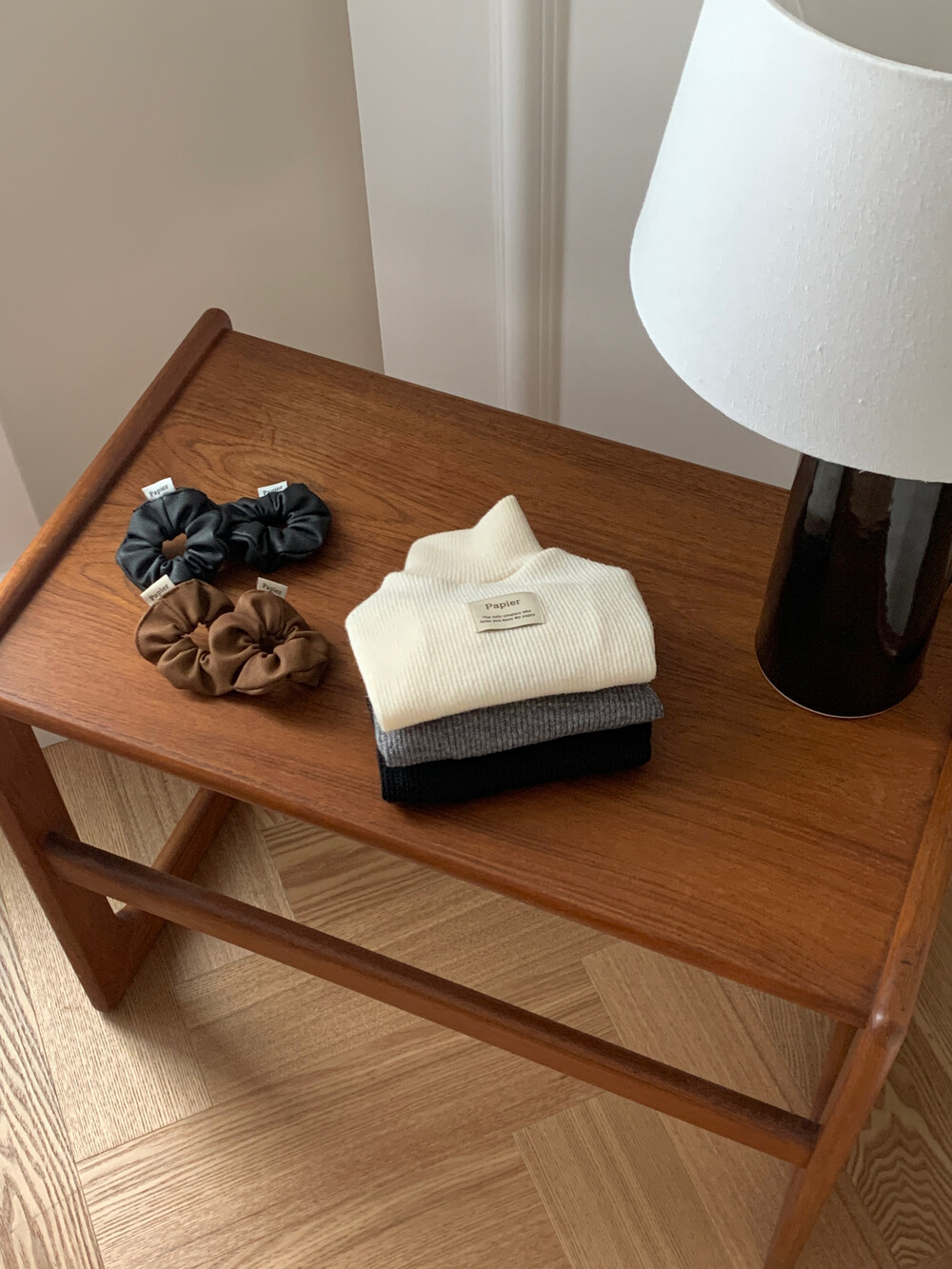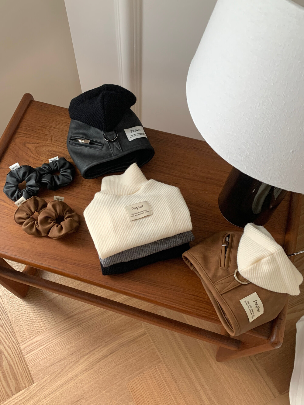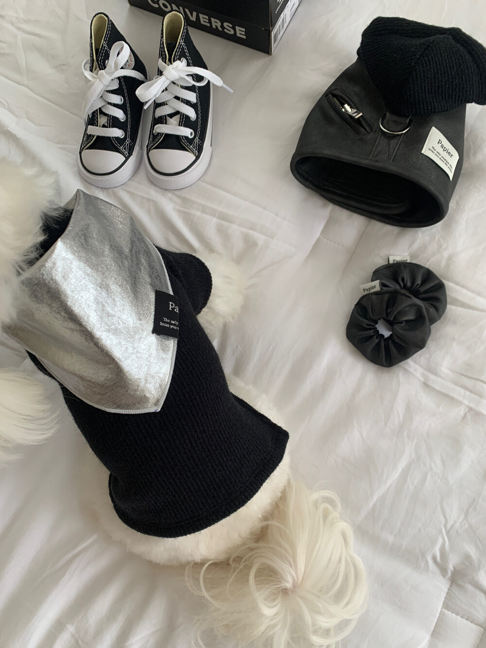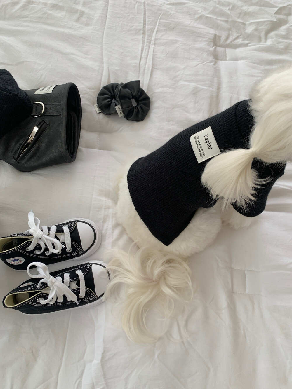 같이 코디된 레더 스크런치는 원단 특성상 흘러내림 이슈로