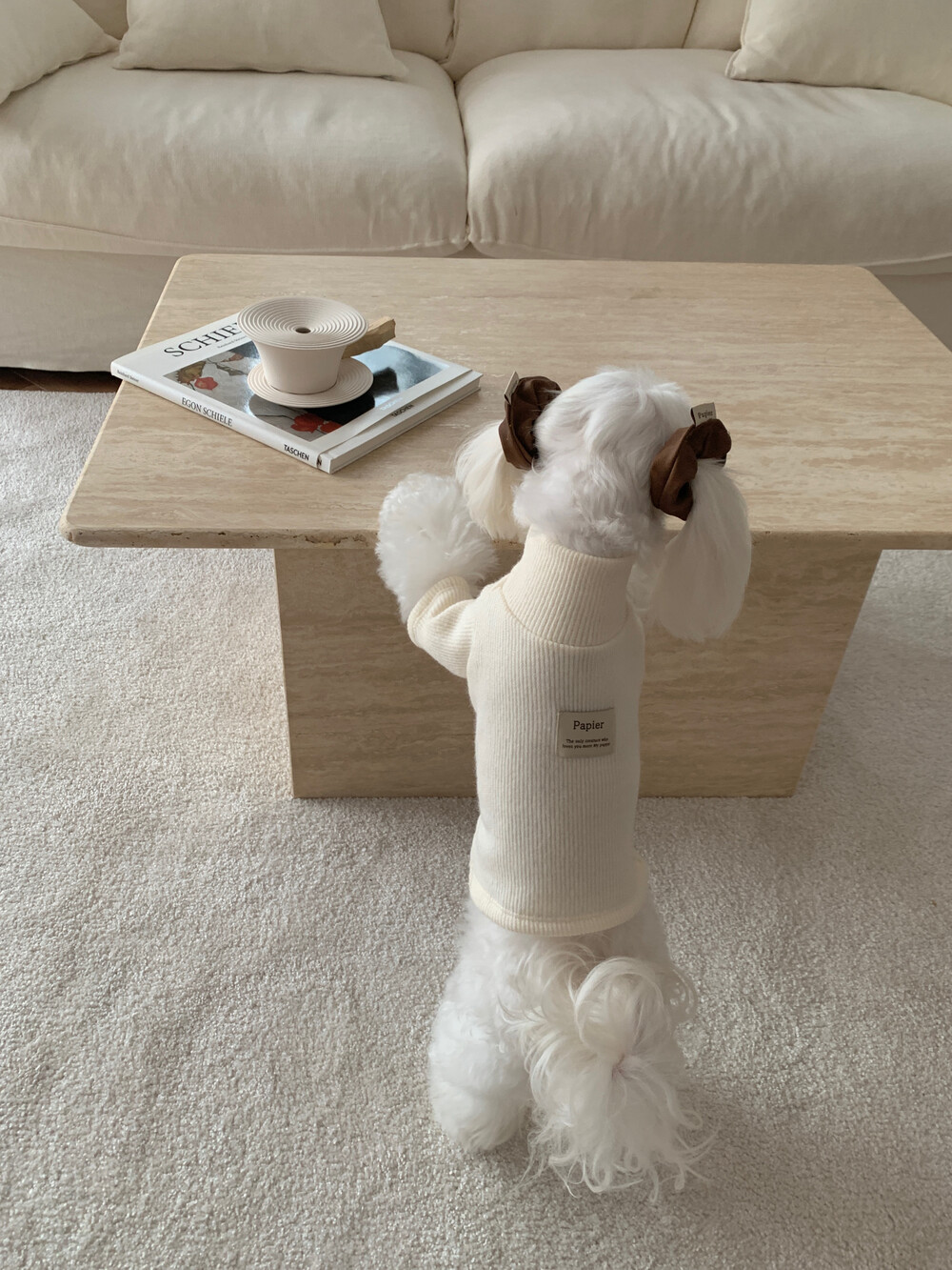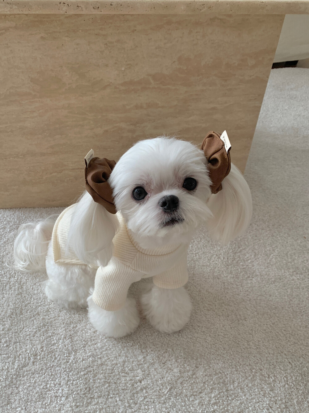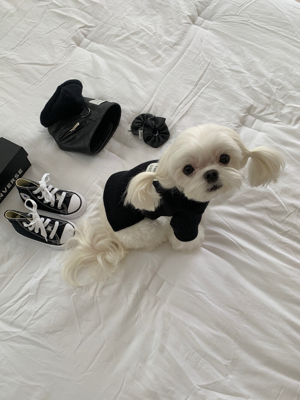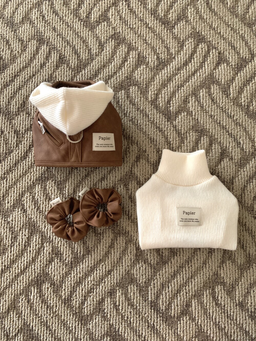 같이 코디된 레더 스크런치는 원단 특성상 흘러내림 이슈로
