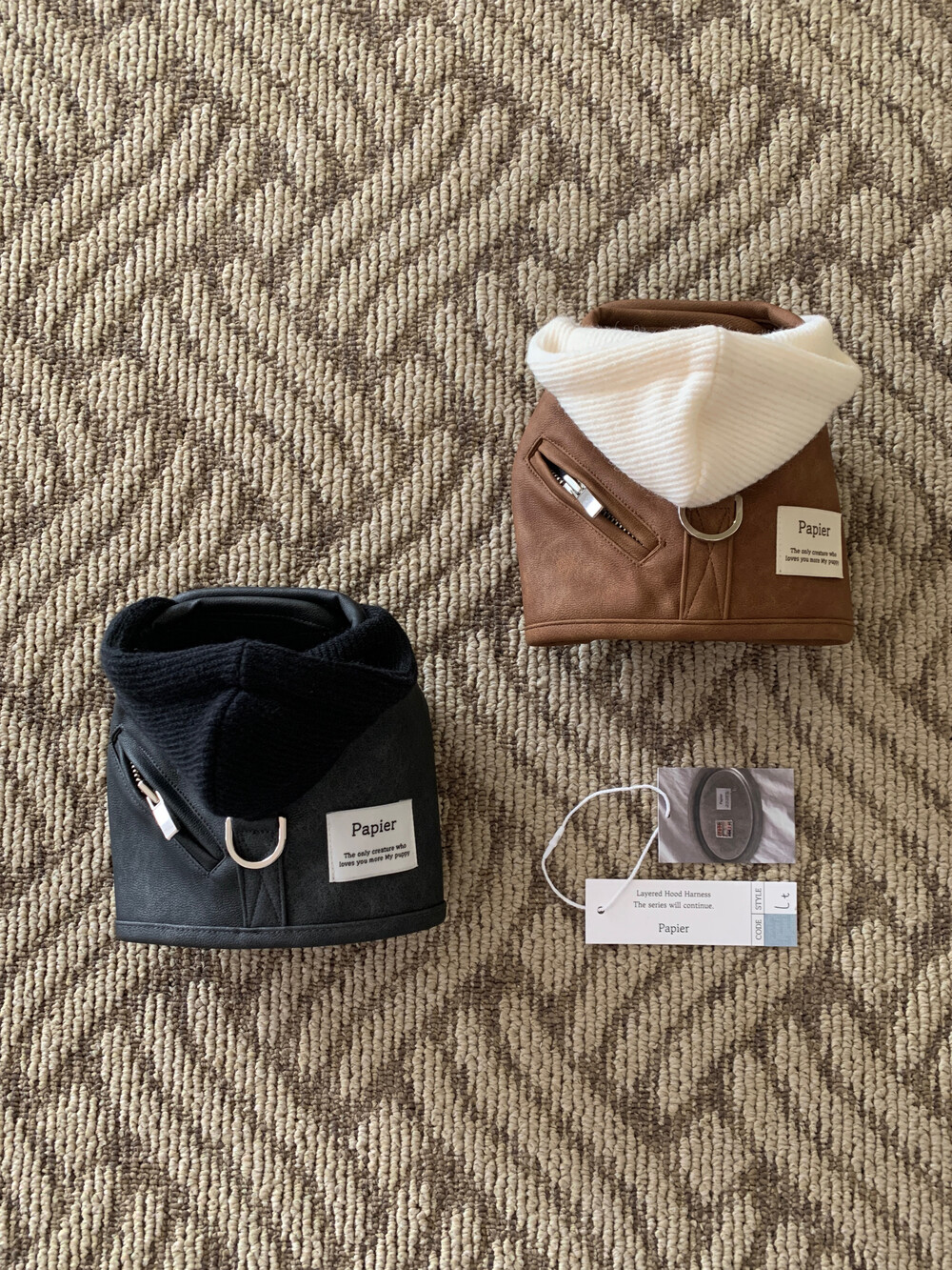 (파피어에서 모든 레이어드 후드 하네스에는 미투 제품 방지로 정품 택 및 홀로그램 스티커가 부착되어 나갑니다.)