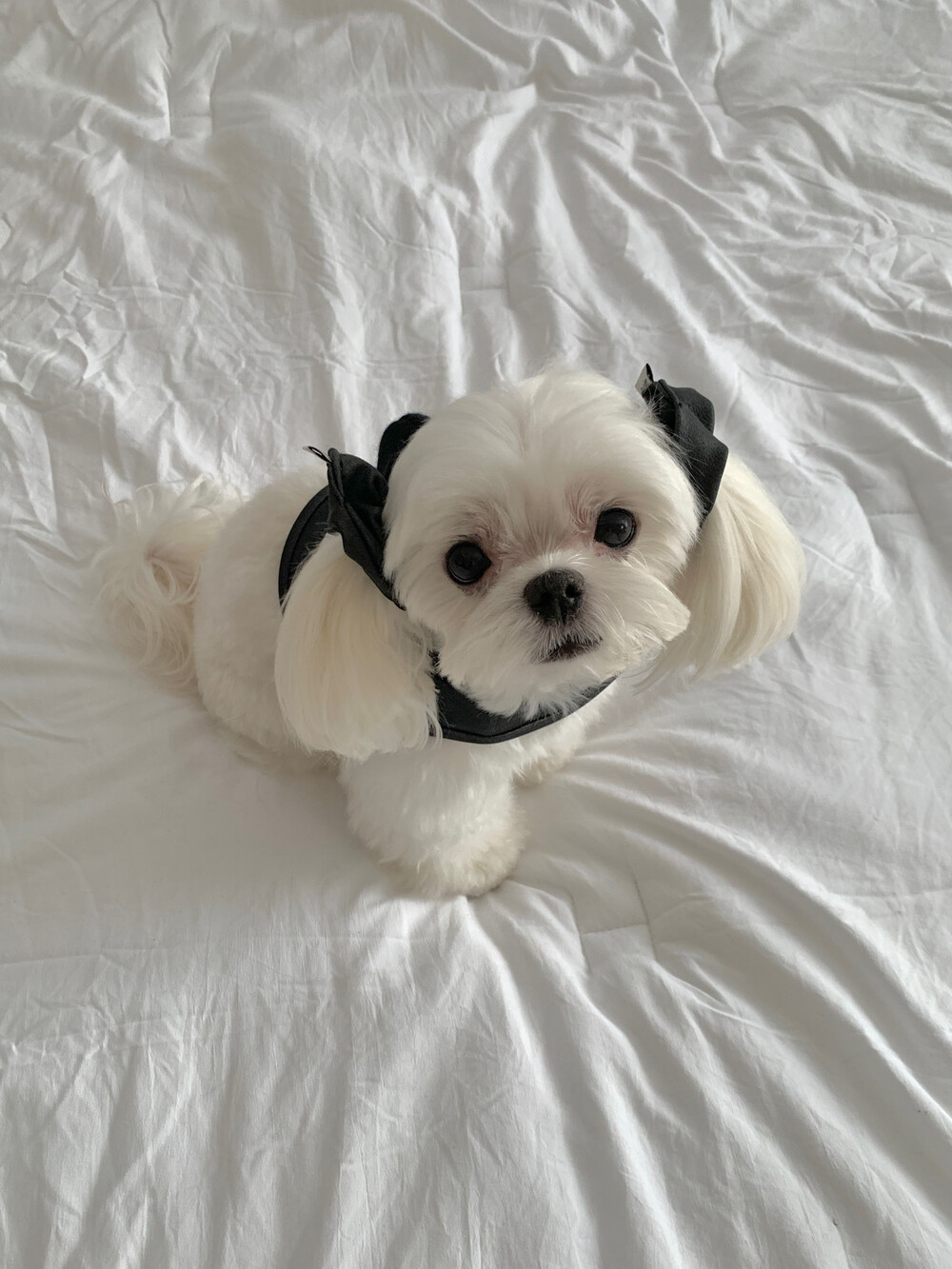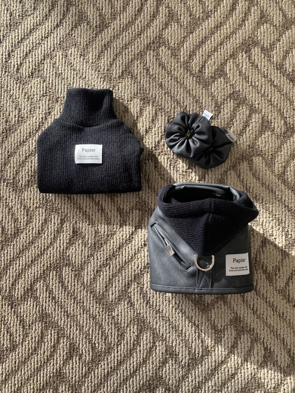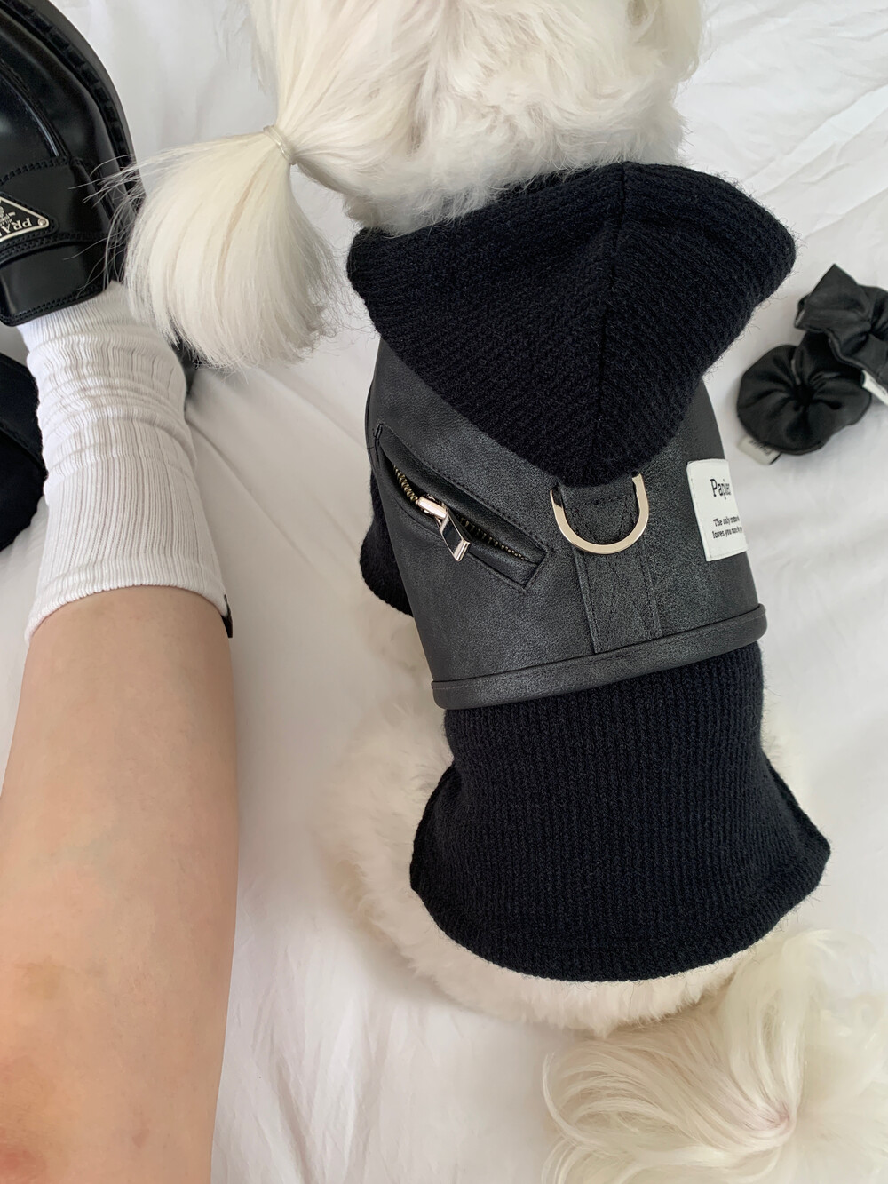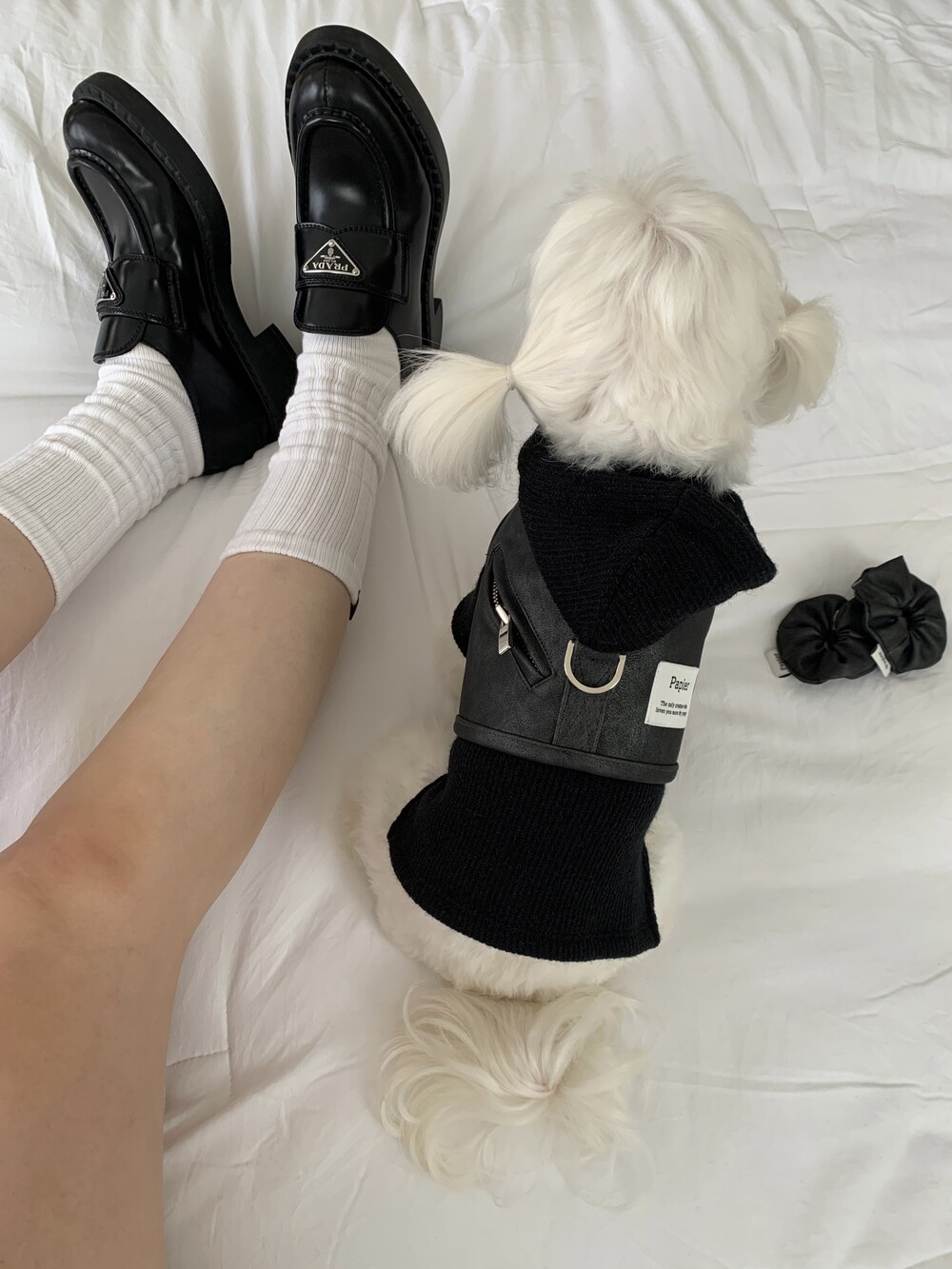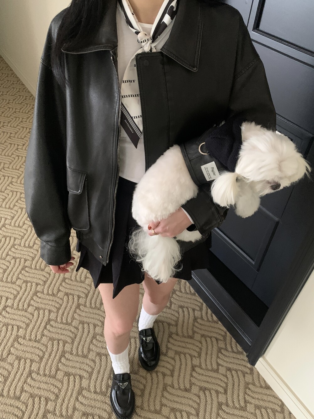 같이 코디된 레더 스크런치는 원단 특성상 흘러내림 이슈로