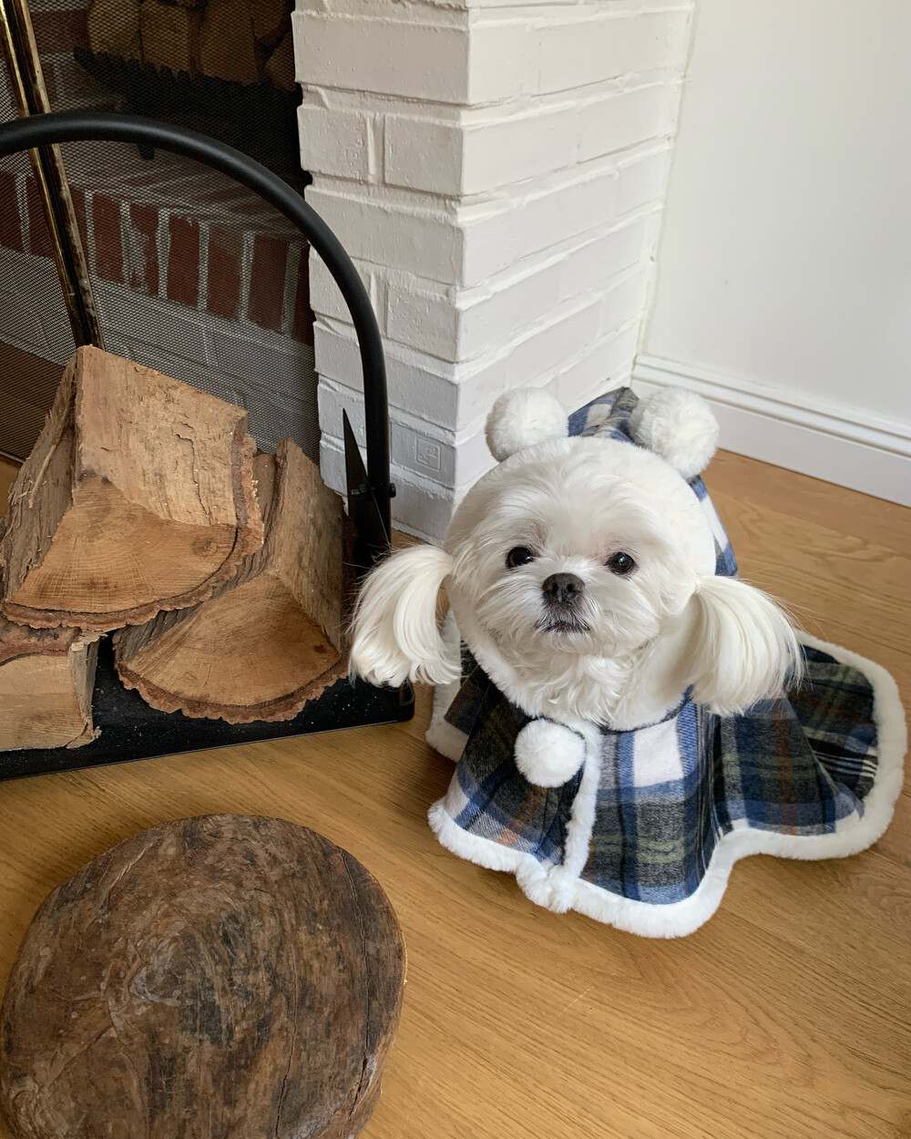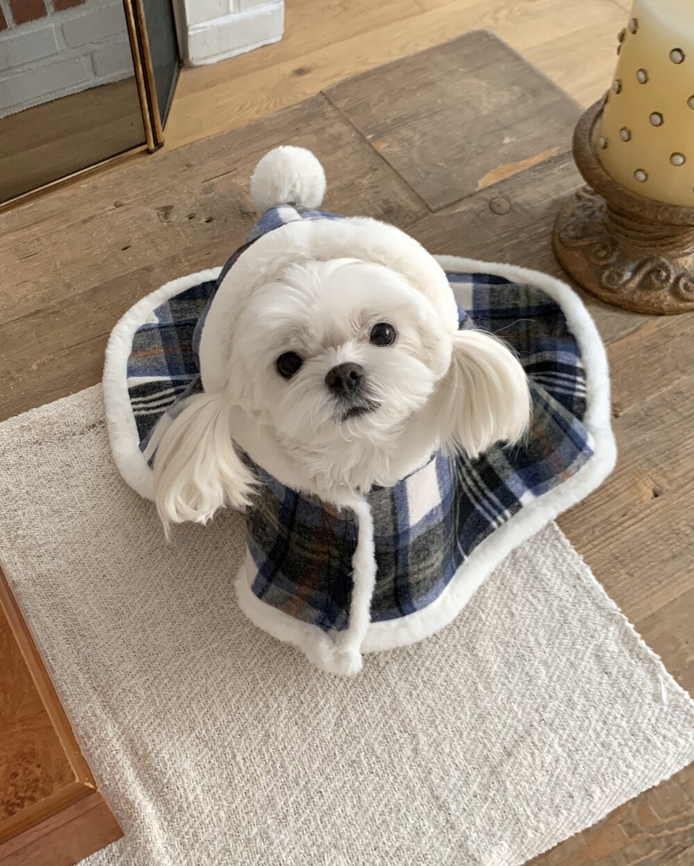 케이프 하단 : 1 사이즈 폼폼 브로치