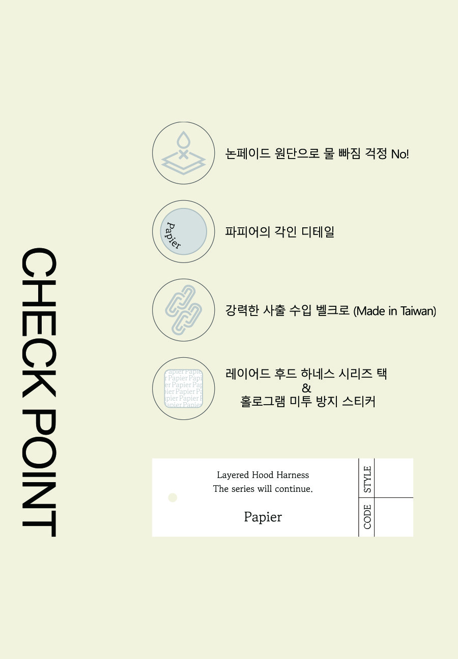 레이어드 후드 하네스 오리지널 퀄리티를 꼭 느껴보세요.