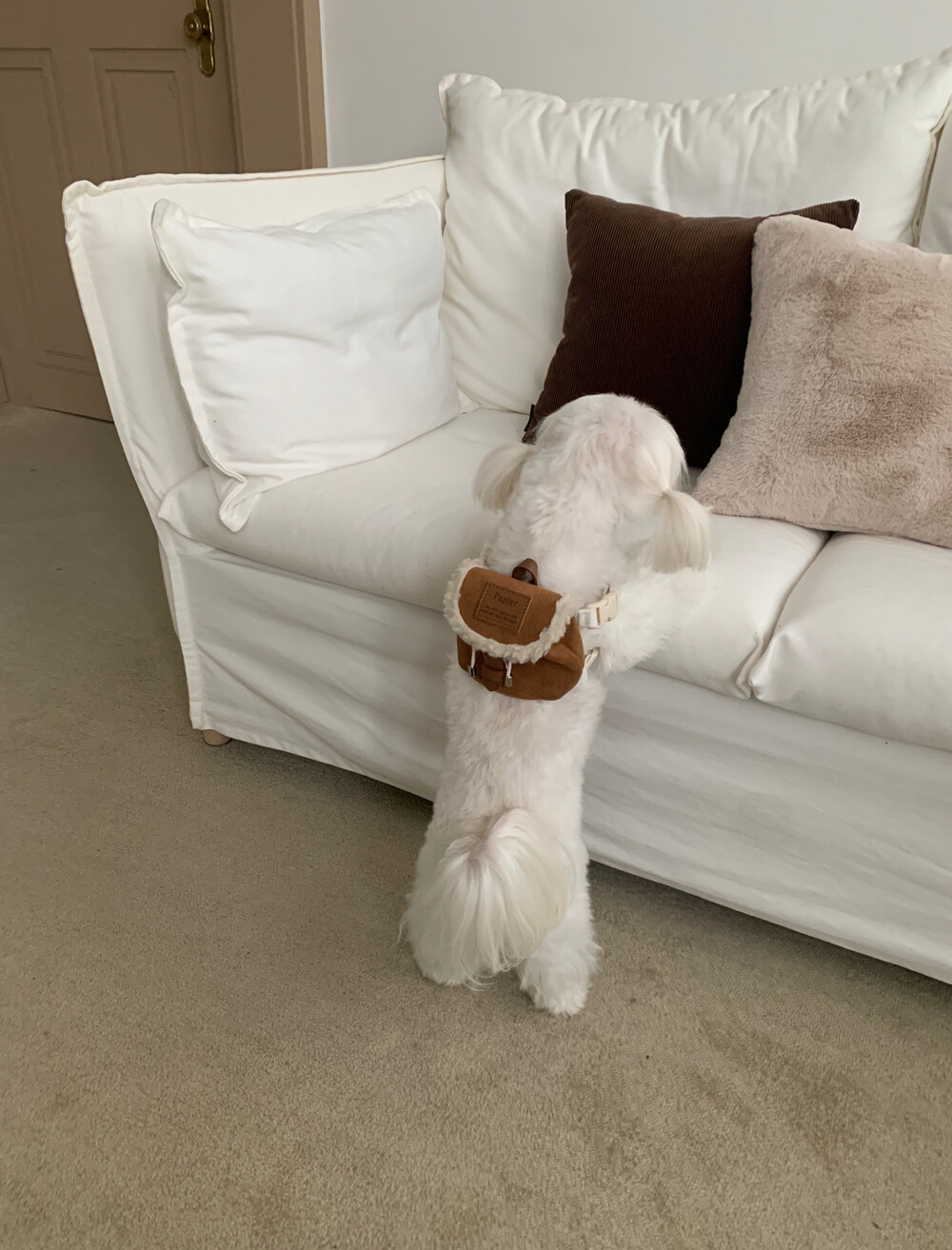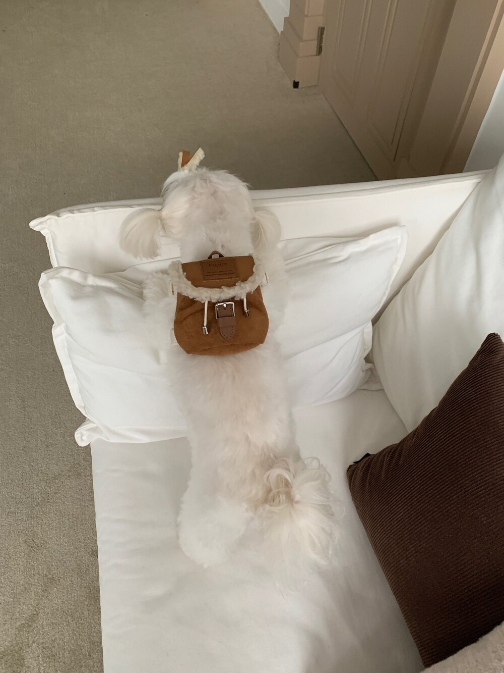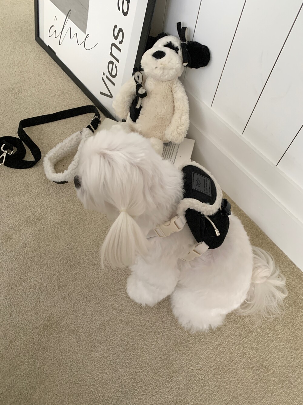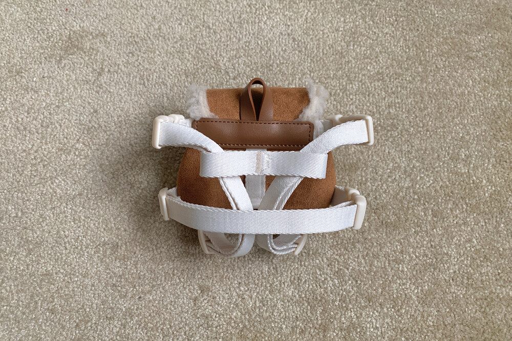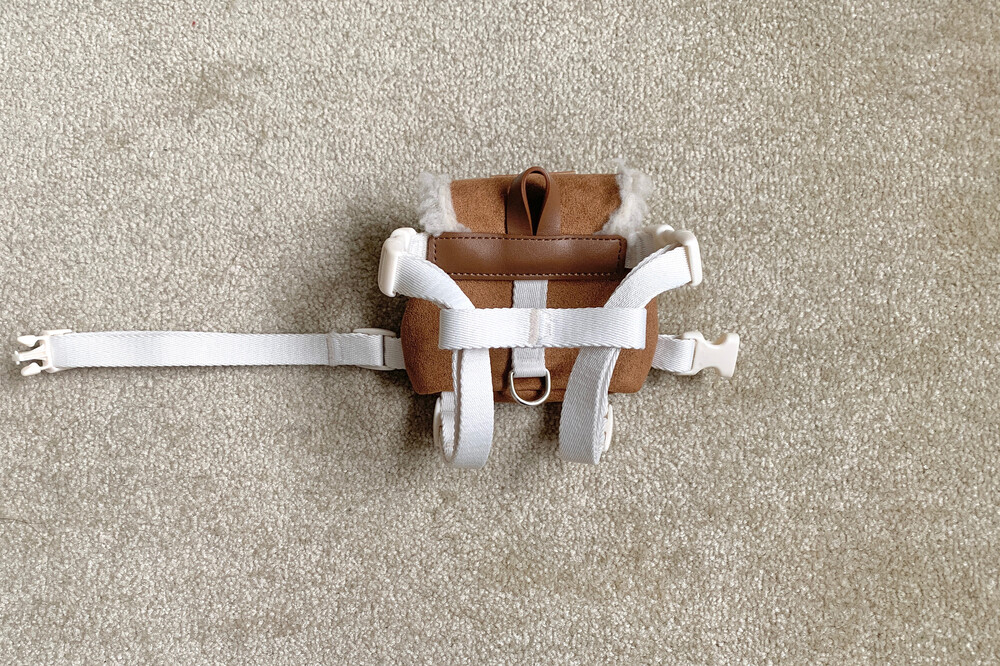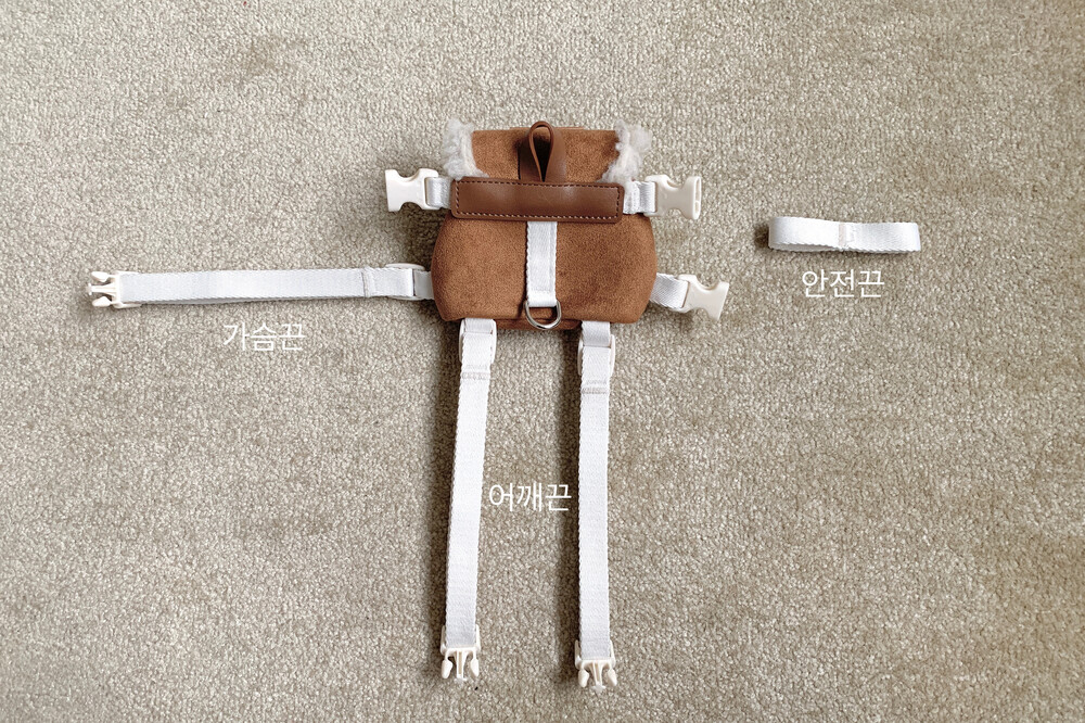 2. 어깨에 착용 후 가슴 배 쪽에 가슴 끈을 착용해 주세요.